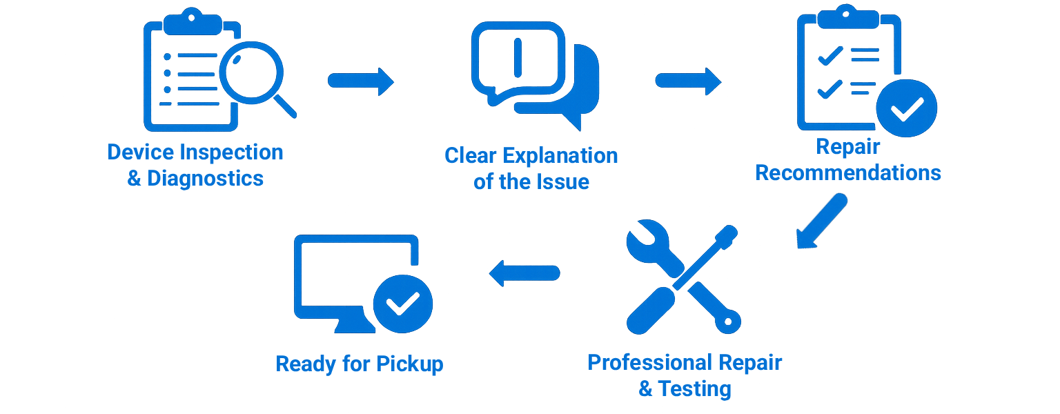 Pricing varies based on the device and type of repair needed. We provide clear, upfront recommendations after diagnostics so there are no surprises.