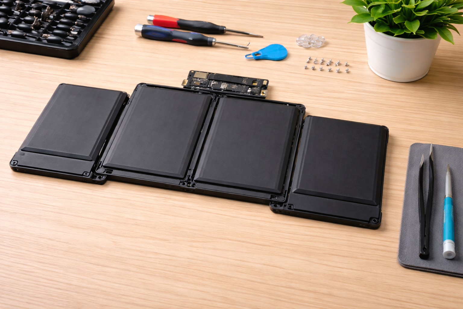 MacBook Battery Replacement — Replaces degraded or swollen batteries to extend portability and on-the-go productivity.